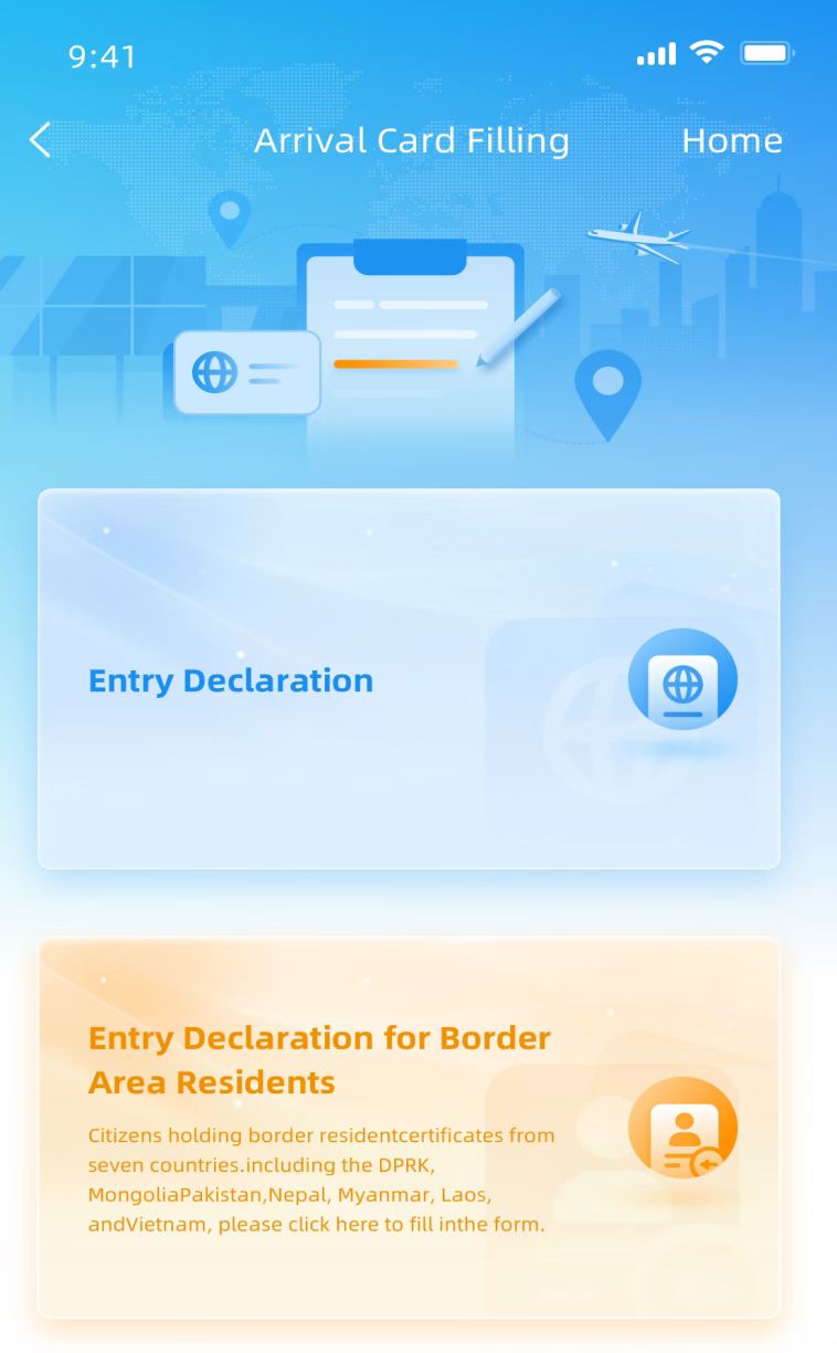 一、入境卡填报网址界面 https://s.nia.gov.cn/ArrivalCardFillingPC/