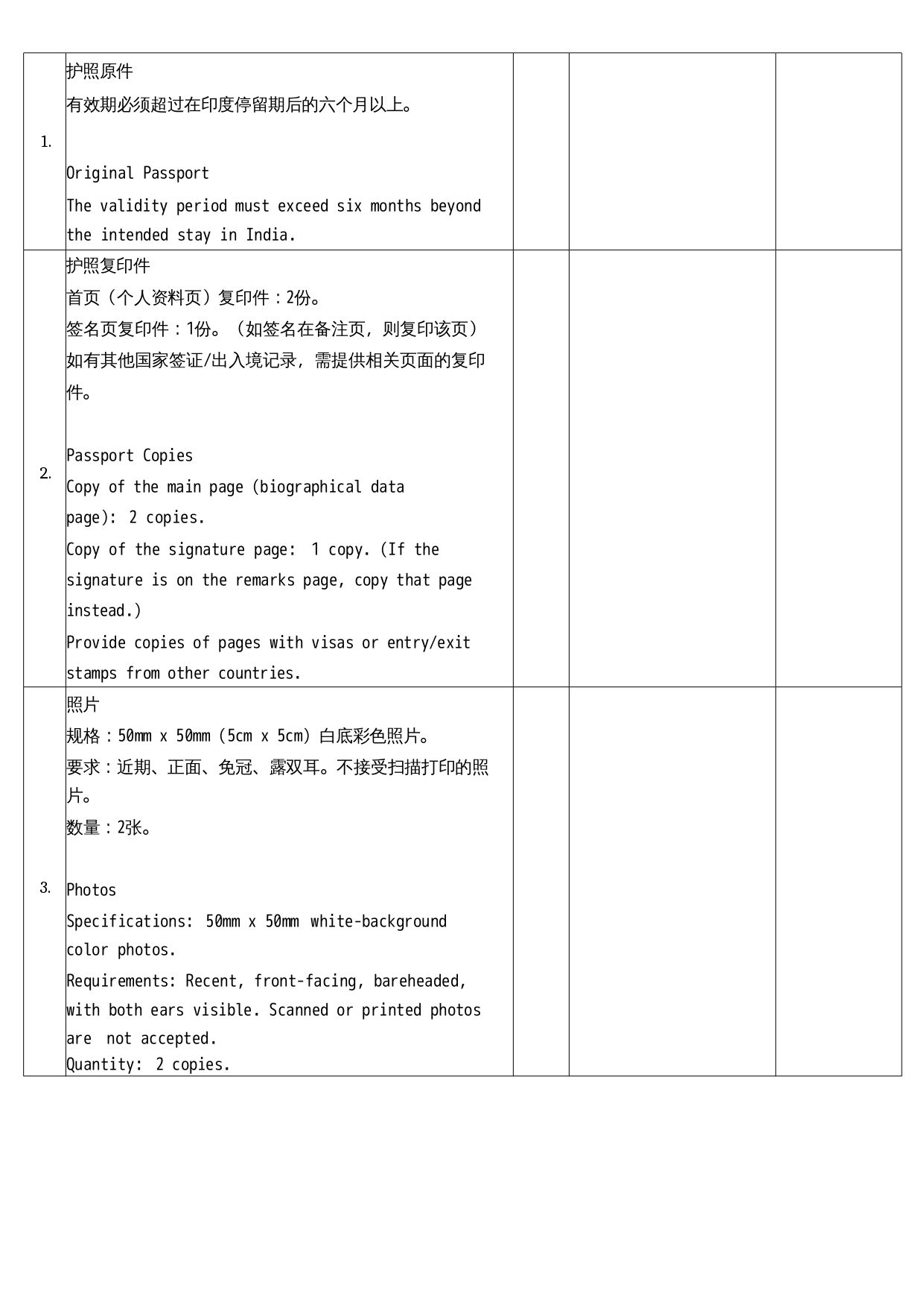 - 护照至少还有190天有效期,并且留有连续两页空白页,其中一页用来黏贴护照,另一页供印度机场出入境移民官员使用。