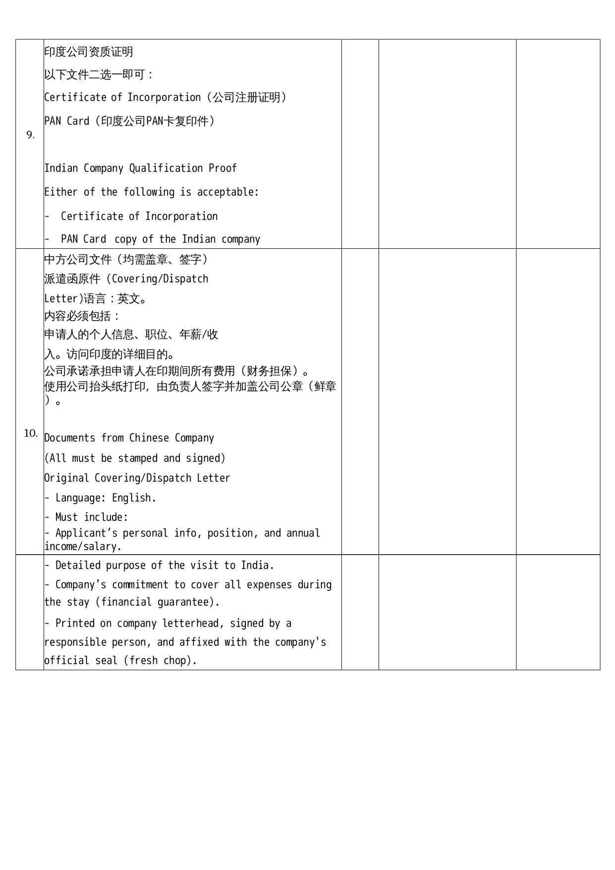 - 来自被认可的印度公司的邀请函原件/传真件(邀请函应该是清楚明确,并有清晰签名。)